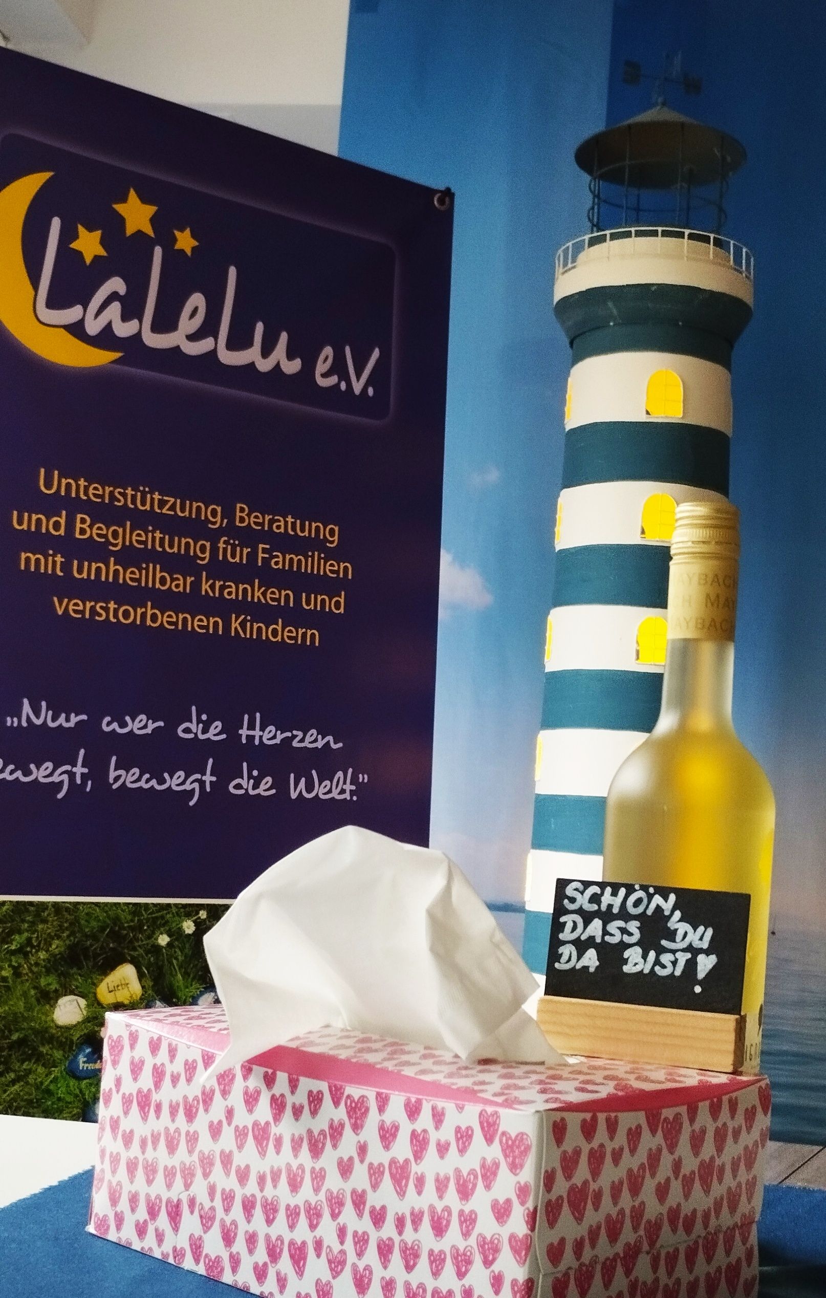 Können sie sich vorstellen, in einer einladenden Atmosphäre mit Menschen ins Gespräch zu kommen, die in ähnlichen Lebenssituationen sind? In gemütlicher Runde, gerne bei einem Glas Wein oder einem anderen Getränk haben Sie die Möglichkeit, sich kennenzulernen und zu erfahren „ich bin nicht allein“. Gemeinsam wird die Trauer aus dem Tabu geholt. Es geht in einen Austausch von Erlebtem und Erfahrungen. Die Abende werden von Trauerbegleiterinnen des LaLeLu e.V. begleitet. Jeder Abend wird unter einem anderen Thema stehen. Die Treffen finden regelmäßig an jedem ersten Dienstag im Monat statt. Die Teilnahme ist kostenlos, Spenden sind willkommen.