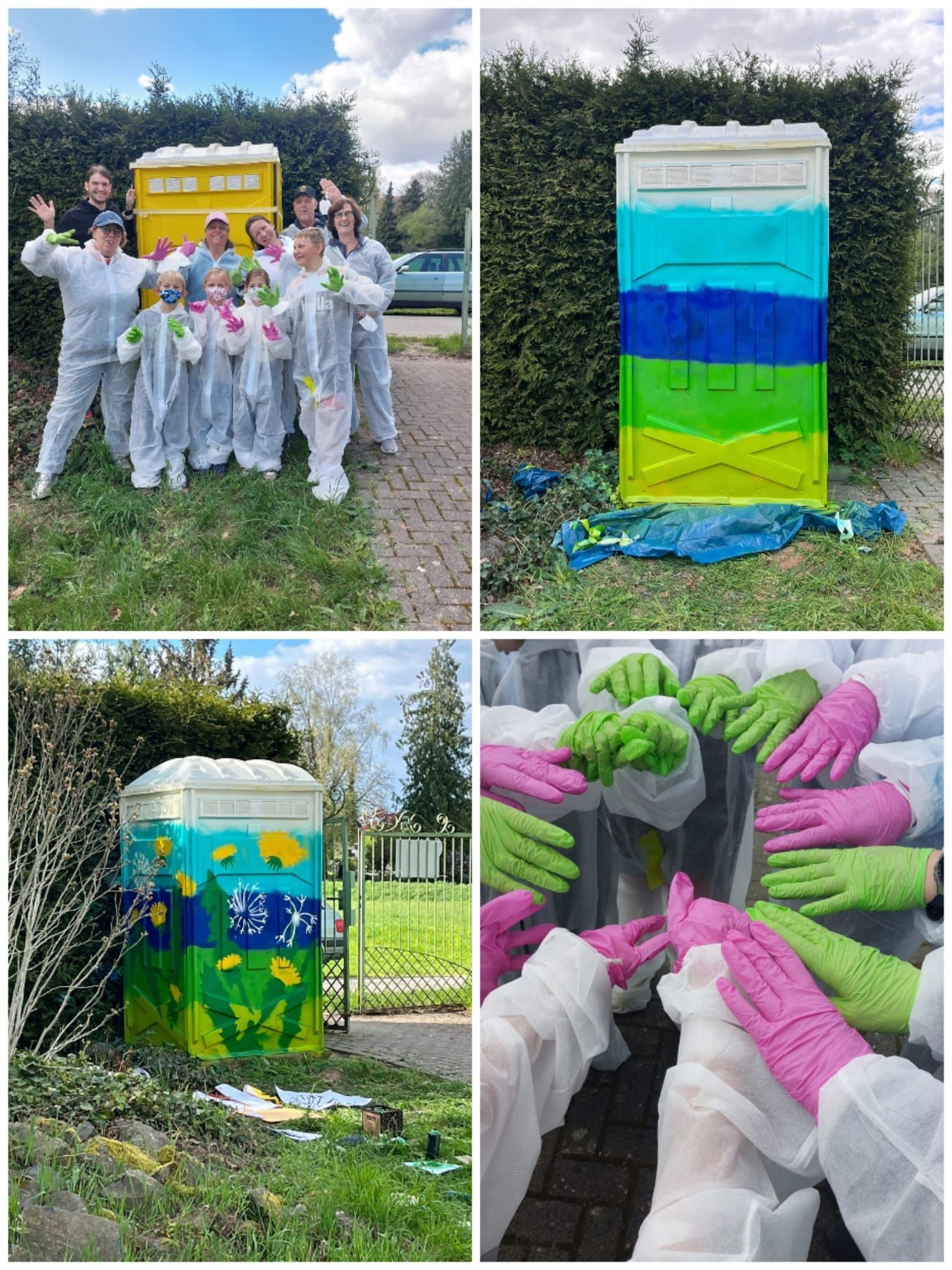 Schaut mal, was wir in den Osterferien gemacht haben. Gemeinsam mit unserer Trauergruppe "Die coolen Faulis" haben wir die Gartentoilette mit Graffiti verschönert. Dabei hat uns der Profi Lukas Sünder geholfen. Sieht es nicht grandios aus? Wir sind auf jeden Fall schwer begeistert.