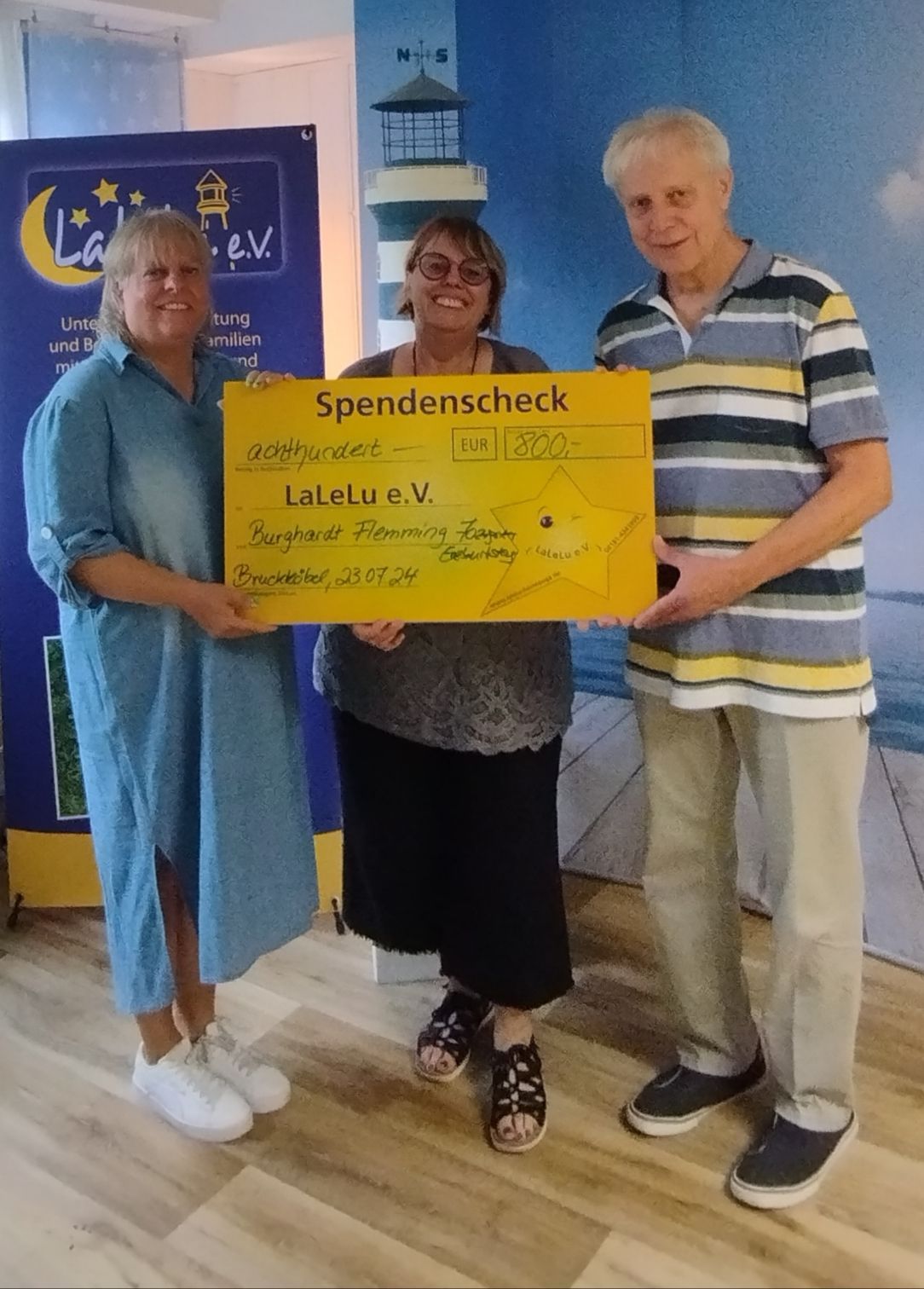 etwas zurückgeben“, dies waren die Worte von Burghardt Flemming beim Besuch im LaLeLu Büro. Heike und Ellen haben sich sehr über die Spende in Höhe von 800 € gefreut.